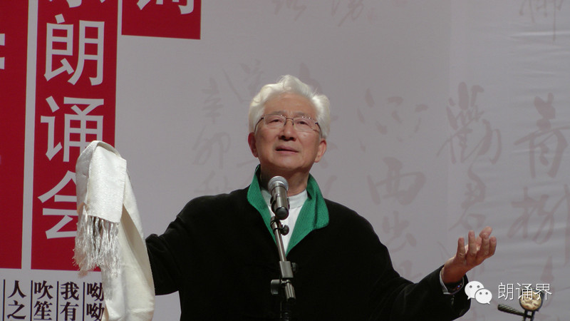 在几位国内著名朗诵艺术家精彩演绎后, 先生即将登台, 主持人介绍曲牌的话音刚落, 琵琶演奏者一弹决破真珠囊, 先生如那个" 盖世界浪子班头, 普天下郎君领袖" 的关老叟, 手执白色丝巾缓步登场, 他环顾四围, 欲走还停, 观众面前瞬时展现出带着爱怜的眼神, 怀着悲切之情远观送别情人后凭栏望远,深情企盼的小女子——" 自送别, 心难舍, 一点相思几时绝? " 听着这断人心肠的字字句句, 就如手中白缎已披在望穿秋水女子的肩头, 我们能经受住肤浅的、粗糙的痛苦, 但是只要稍微精致一点、深情一点, 我们就会失去全部武装, 悲剧恰是把生活中有意义的东西撕碎给人看——"凭阑袖拂杨花雪。溪又斜,山又遮,人去也!" 伴着琵琶琴奏, 让人忽生" 低眉信手续续弹, 说尽心中无限事" 的感触。" 凭阑袖拂杨花雪。溪又斜, 山又遮, 人, 人去也! " 几个简单的重复, 先生的声音突然高起, 抑扬顿挫中却道尽了繁华落尽的凄凉, 这是"却原来姹紫嫣红开遍, 似这般都付与断壁残垣"的廖落, 却也是"画檐蛛网, 曾为歌舞潮"的人生慨叹;