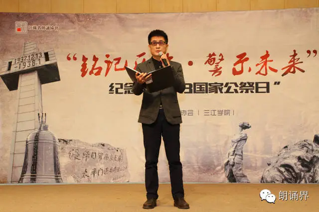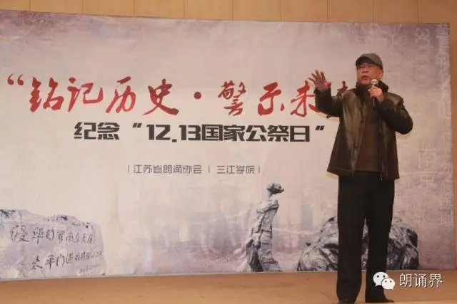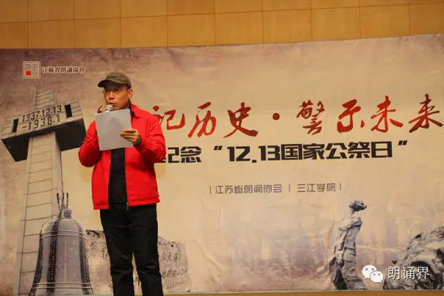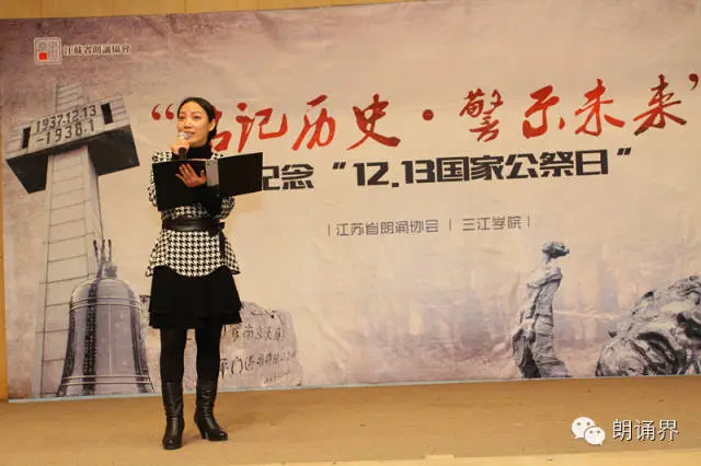 2014年12月9日,江苏省朗诵协会与三江学院联合举办的“铭记历史警示未来”12.13国家公祭日诗歌朗诵音乐会在三江学院隆重举行。江苏省文化厅、省新闻出版局、江苏广电总台、三江学院相关领导、特邀嘉宾、朗诵协会新一届全体理事以及三江学院参与演出和观摩的相关师生计500多人参加了活动。