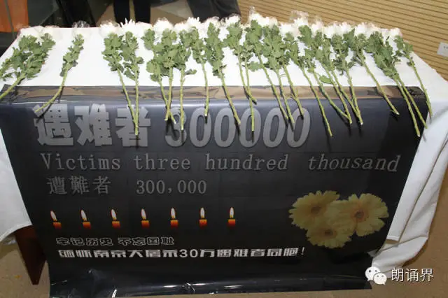 朗诵会开始前,每一位入场者将一朵朵白色的菊花敬放在追思遇难同胞追思台上,整个报告厅庄重肃穆。序幕中,演职人员及观众全体起立,为在侵华日军南京大屠杀中遇难的同胞默哀1分钟。